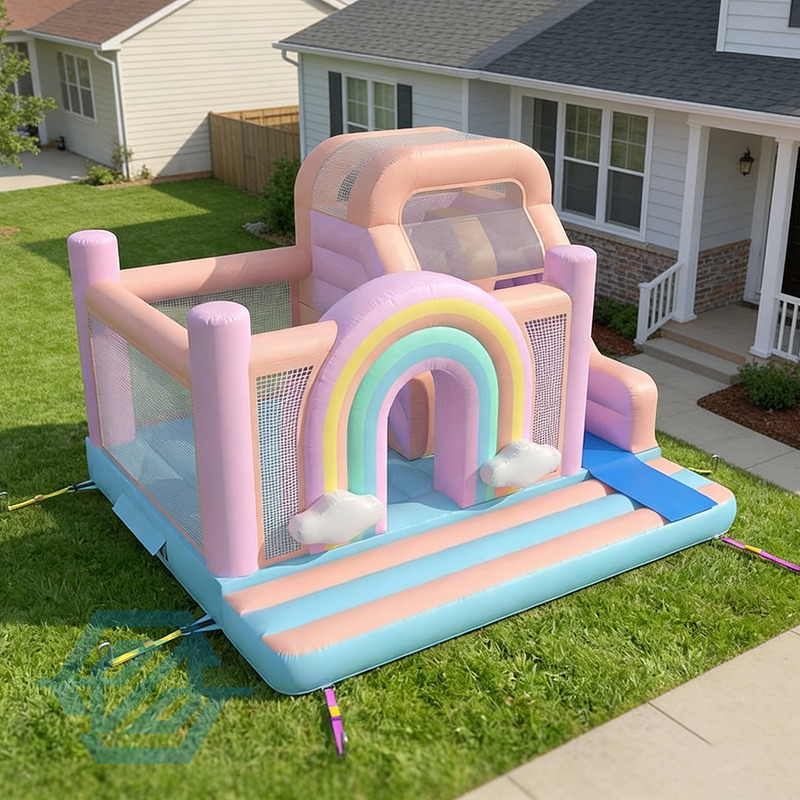 Yes. Its 5 × 5 m size, durable PVC material, and attractive rainbow theme make it ideal for rental and commercial use.